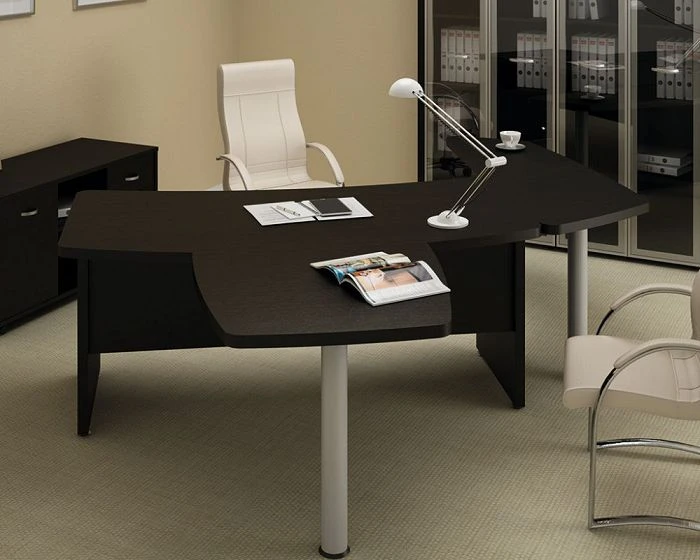 Данный кабинет руководителя доступен в трех цветах. Первый из них – орех. Это стандартный, спокойный и приятный глазу оттенок. К нему можно подобрать светлую обивку и аксессуары, тогда все оформление помещение будет выглядеть по-деловому, но вместе с тем не скучно.